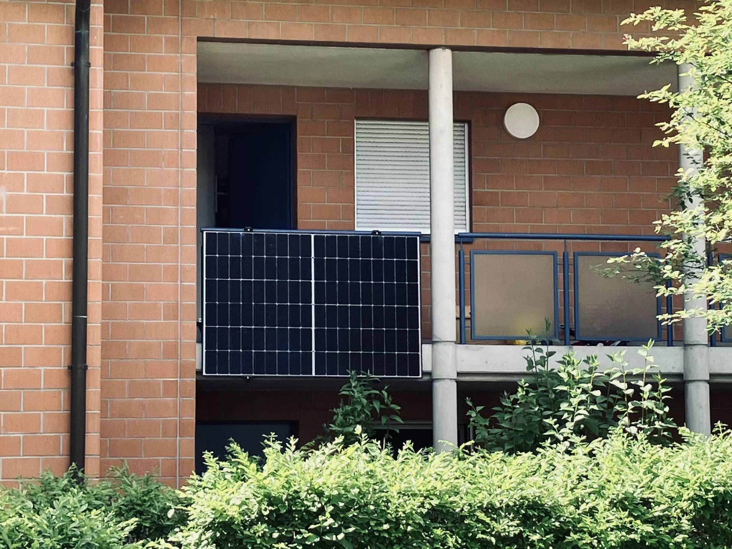 Unser kleines Balkon-Solarpanel-Set „Nofretete“ passt wohl auf jeden Balkon: Es besteht aus einem einzelnen Panel von 172 cm Länge und dem Wechselrichter Hoymiles HM-300.